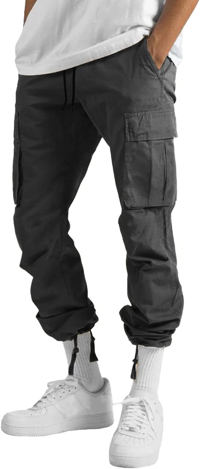 The combination of cargo-style utility with the comfort of athletic wear creates a product that can appeal to a wide range of consumers. Whether it’s for casual outings, light outdoor activities, or comfortable workwear, these pants offer the kind of versatility and functionality that is often sought after in modern casual clothing. The adjustable features at both the waist and ankles add to their adaptability, allowing wearers to customize the fit for different activities or style preferences.